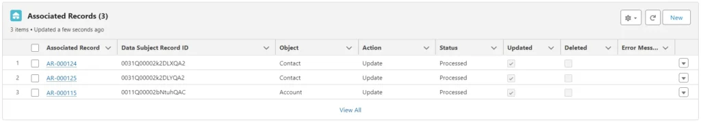 You need to be able to show what data was erased or provided, the Salesforce objects and records involved, and when processing occurred.