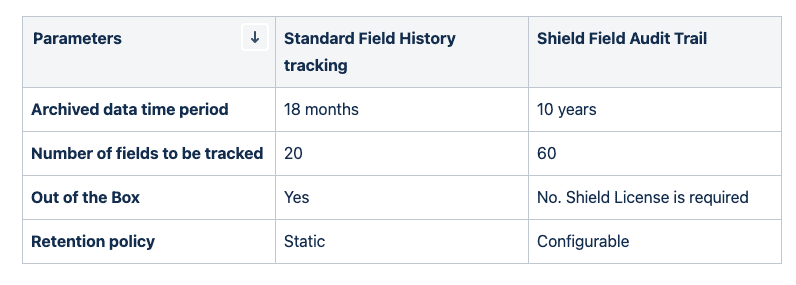 Comparison of Standard Field History tracking vs Shield Field Audit Trail