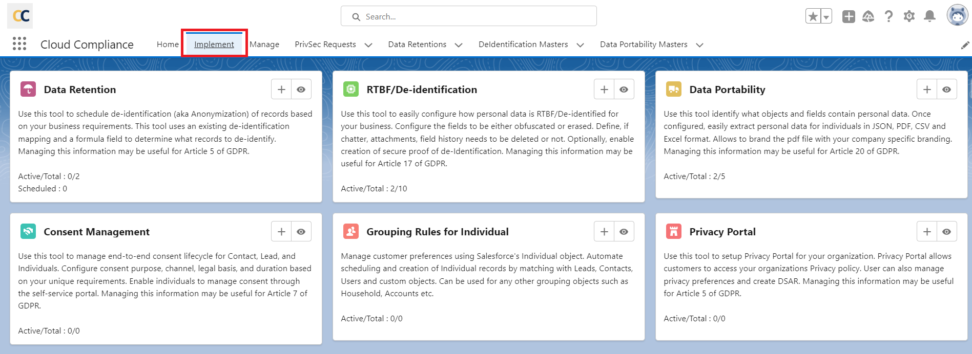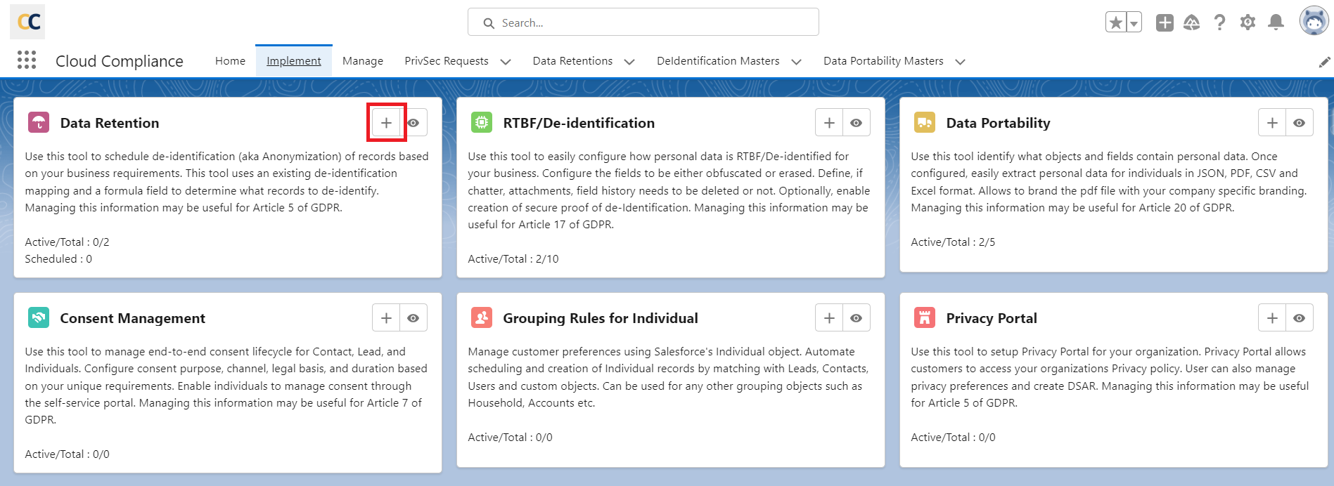 To create a Data Retention Rule, you’ll need to go to the ‘Implement’ tab.