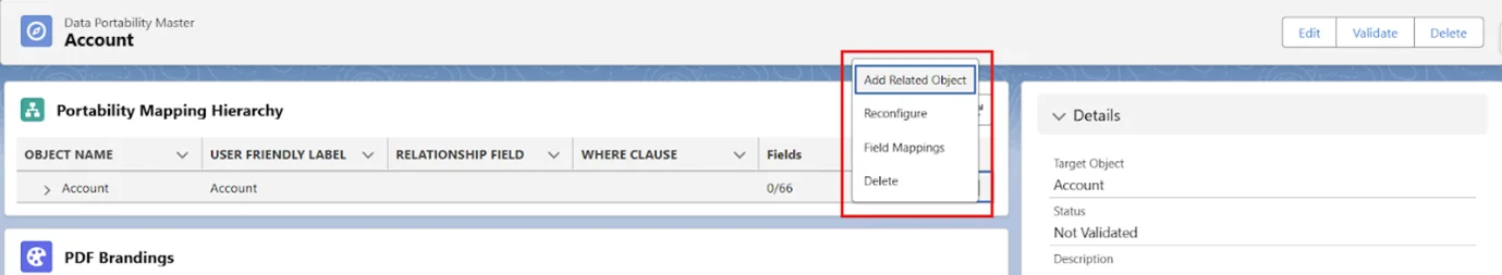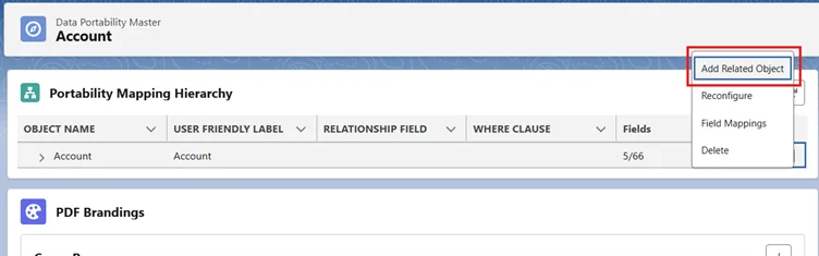 - Add Related Object: After clicking on this, the user will be able to add a related object under the parent object.