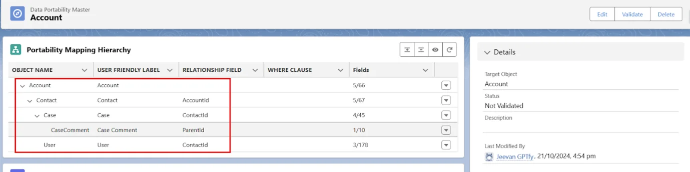 - Nth-level Data Portability allows the user to port data to any number of records attached to the objects in the hierarchy mapped.